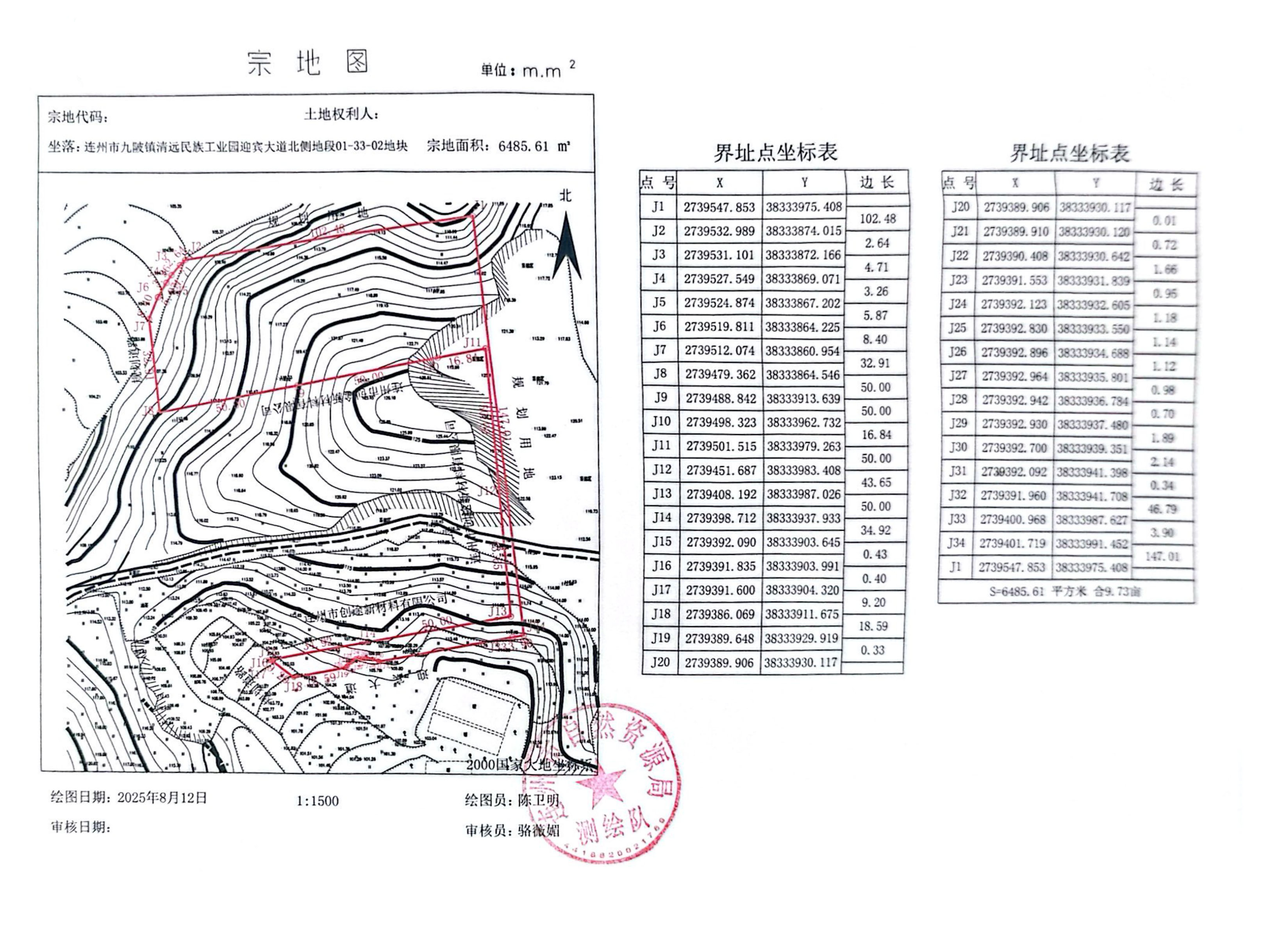 2.连州市九陂镇清远民族工业园迎宾大道北侧地段(宗地编号01-33-02)地块规划用地红线图