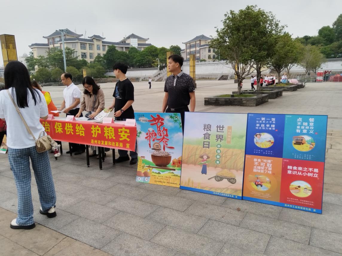 为普及科学储粮知识,增强全民爱粮节粮意识,2024年10月16日上午,连州市发展和改革局联合农业农村局、教育局、科技局、妇联等单位在刘禹锡文化广场开展2024年世界粮食日宣传活动。