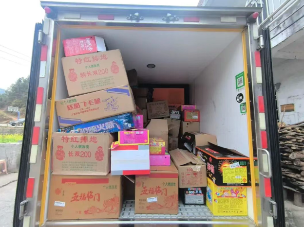 案件一 1月29日17时30分,我局在西岸镇附近发现并拦截一辆涉嫌无证运输烟花爆竹的车辆。经现场检查,该车装载烟花爆竹50箱,总重量约500公斤,另发现疑似香烟13箱。 经核查,驾驶员谭某某无法提供相关运输资质,且未采取任何安全防护措施,随后被依法传唤至公安机关进行调查。 案件二 同日17时50分许,我局联合连州市应急管理局(下称联合执法组),在连州市连州镇某号仓库内查获一批非法储存的烟花爆竹,共计34箱,重约230公斤,现场抓获一名涉嫌非法储存烟花爆竹的嫌疑人黄某甲。 案件三 当晚19时许,联合执法组在连州市连州镇另一仓库再次查获一批非法储存的烟花爆竹,共计26箱,重约200公斤,并现场搜出疑似香烟约10箱。涉嫌非法储存烟花爆竹的嫌疑人黄某乙被现场抓获。 经查,三名违法行为人对其非法运输、存储烟花爆竹的违法行为均供认不讳。