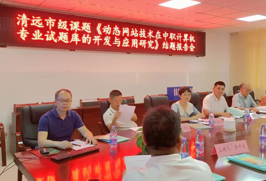 2022年7月21日,连州市职业技术学校承担的清远市级课题《动态网站技术在中职计算机专业试题库的开发与应用研究》结题鉴定会在该校的综合办公楼506会议室隆重举行。连州市教师发展中心教研股股长张神根、科研专干张秀娟老师、教研员李亦长老师、广东省连州卫生学校教研处副主任桂新春老师、北山中学吴珠英老师等五位课题评审专家莅临参加了结题鉴定会,并在会后进行鉴定验收。连州市职业技术学校校长李伟奇、副校长陈卓勋、教学质量办副主任李开武以及课题组的所有成员参加了此次会议。