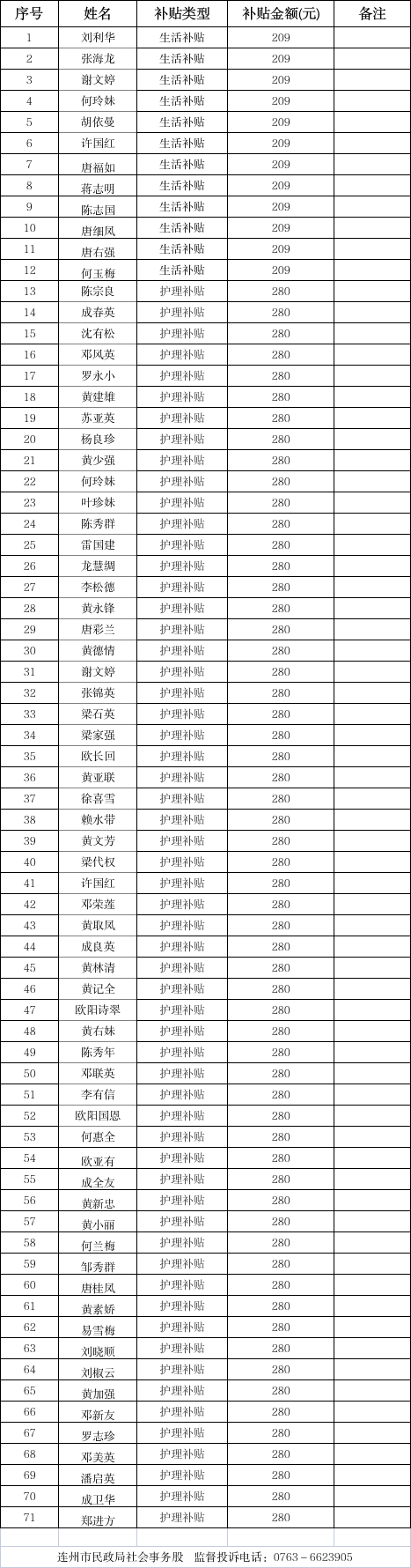 连州市2025年11月新增残疾人两项补贴名单