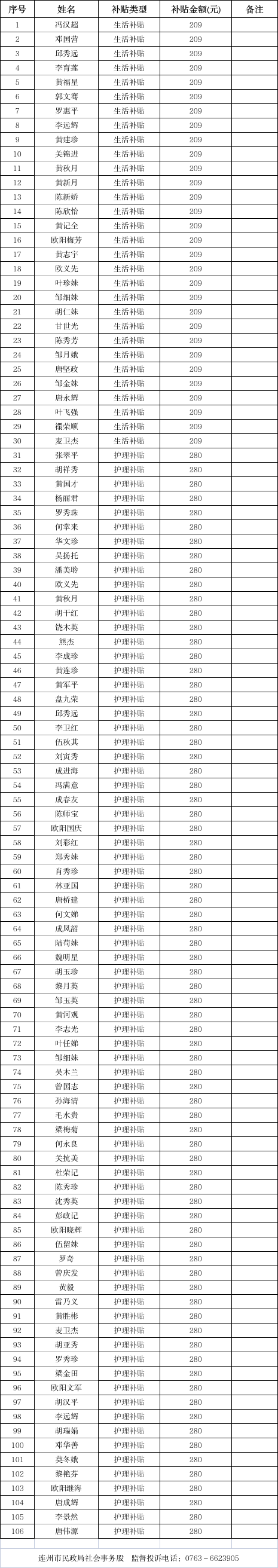 连州市2026年1月新增残疾人两项补贴名单