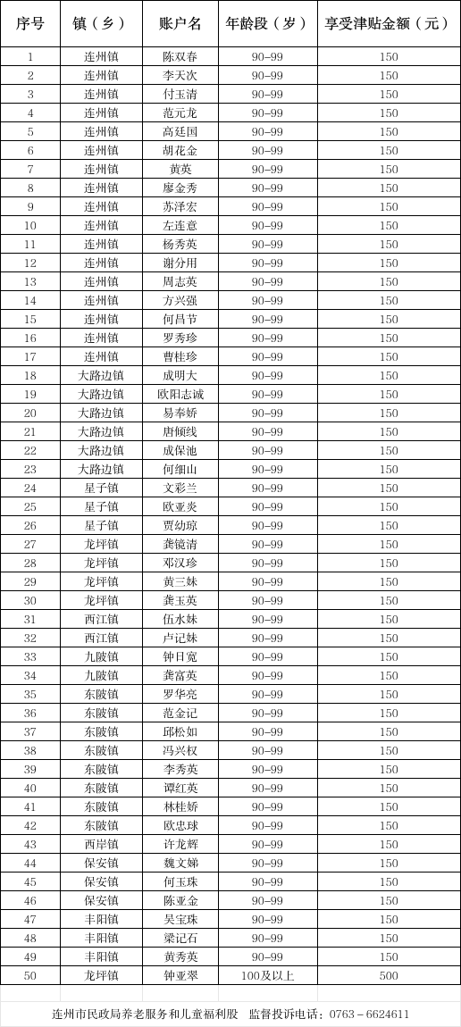 2026年4月变更80岁以上高龄老人津贴名单