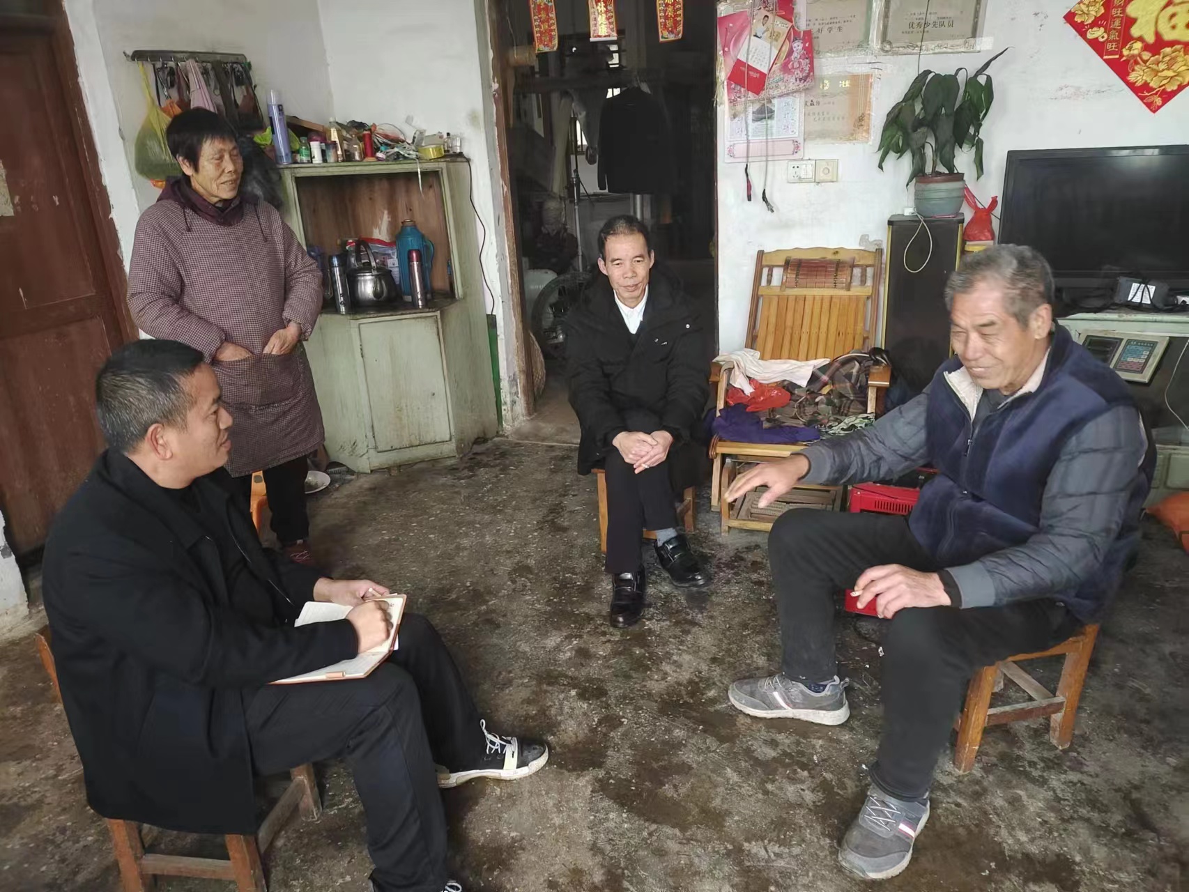 钟木星在群众家里询问生活情况(右二)