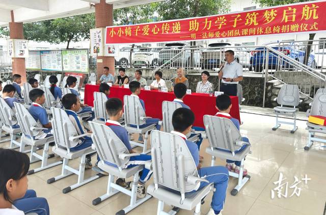 仪式现场,140张崭新的课间休息椅整齐排列,灰色椅面与支架搭配简洁大方,既符合儿童人体工学设计,又兼具耐用性与安全性。据了解,这是明一法师爱心团队捐赠计划中的首批物资,后续还将分批次持续捐赠,预计总捐赠量将达400张。首批休息椅将有效填补学生课间休息设施的缺口,后续捐赠物资则将覆盖更多教学区域,全面改善校园休憩条件。