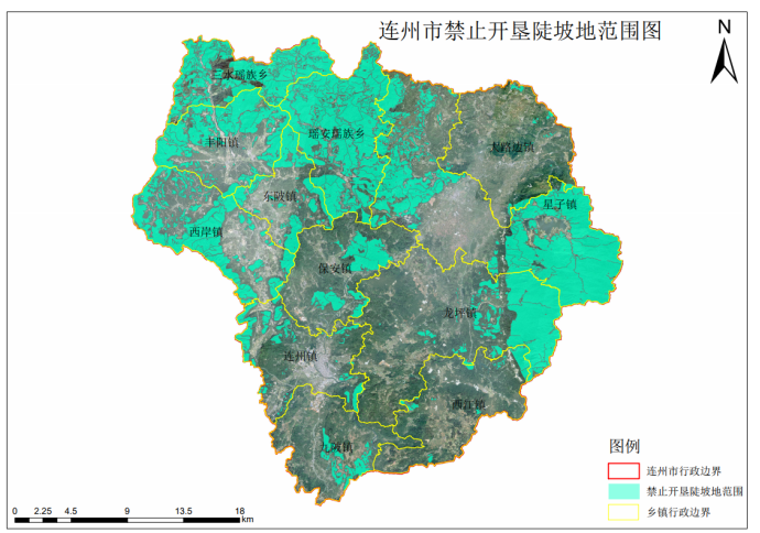 划定连州市全域禁止开垦陡坡地面积974.65平方公里,涉及全市12个镇(乡),具体划定面积和分布范围见附件。