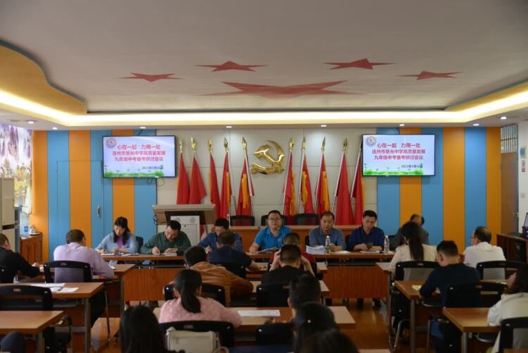 连州市教师发展中心教研股股长沈学忠通报了慧光中学九年级模拟考成绩分析,全面剖析,并以精准的数据分析为慧光中学接下来的中考备考工作指明方向,提出要求:加强学生的思想教育;利用同级生的系统进行连州一模的学生答题分析;做好后期的中考备考复习教学工作,找到薄弱点、切入点、突破天花板,加强团队的合作;对后进生激励与鼓励,落实家访工作。希望慧光中学能够找差距、想策略,眼光放长远,敢想敢拼,在全县内取得更好的成绩。