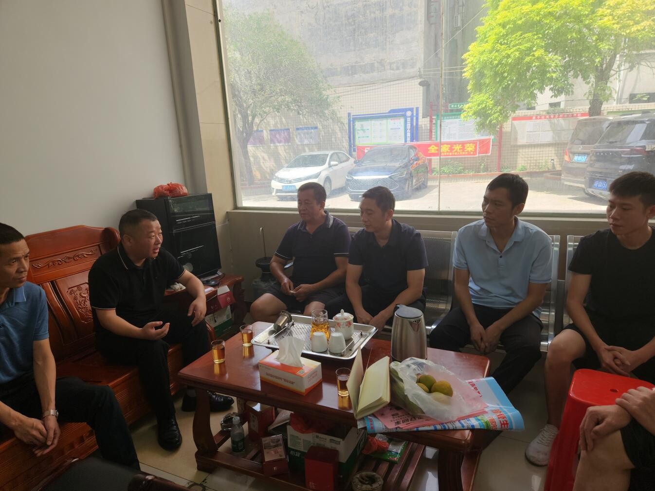 何斌与村干部、群众代表讨论古水水井修缮费用事项。