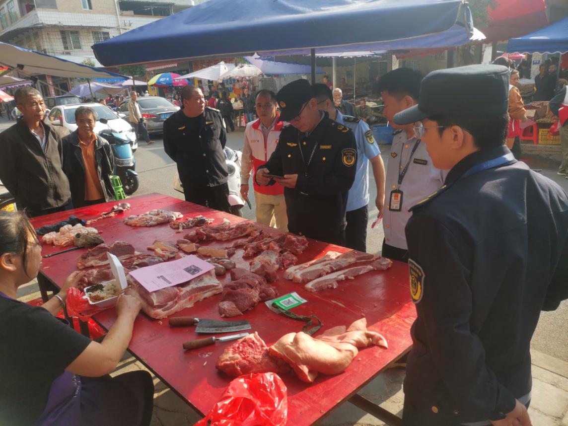 行动中,执法人员重点针对连州镇郊区已捣毁的私屠滥宰窝点进行“回头看”,现场对农贸市场猪肉摊贩“两证两章一报告”进行查验,同时通过宣传引导不断提高市民意识,要求农贸市场生猪经营户要严格遵守《中华人民共和国食品安全法》、《中华人民共和国动物防疫法》、《生猪屠宰管理条例》等法律法规,做到合法经营、诚信经营,严禁采购或经营无合法来源、未经检疫检验或检疫检验不合格的生猪产品。本次检查未发现相关违法行为。