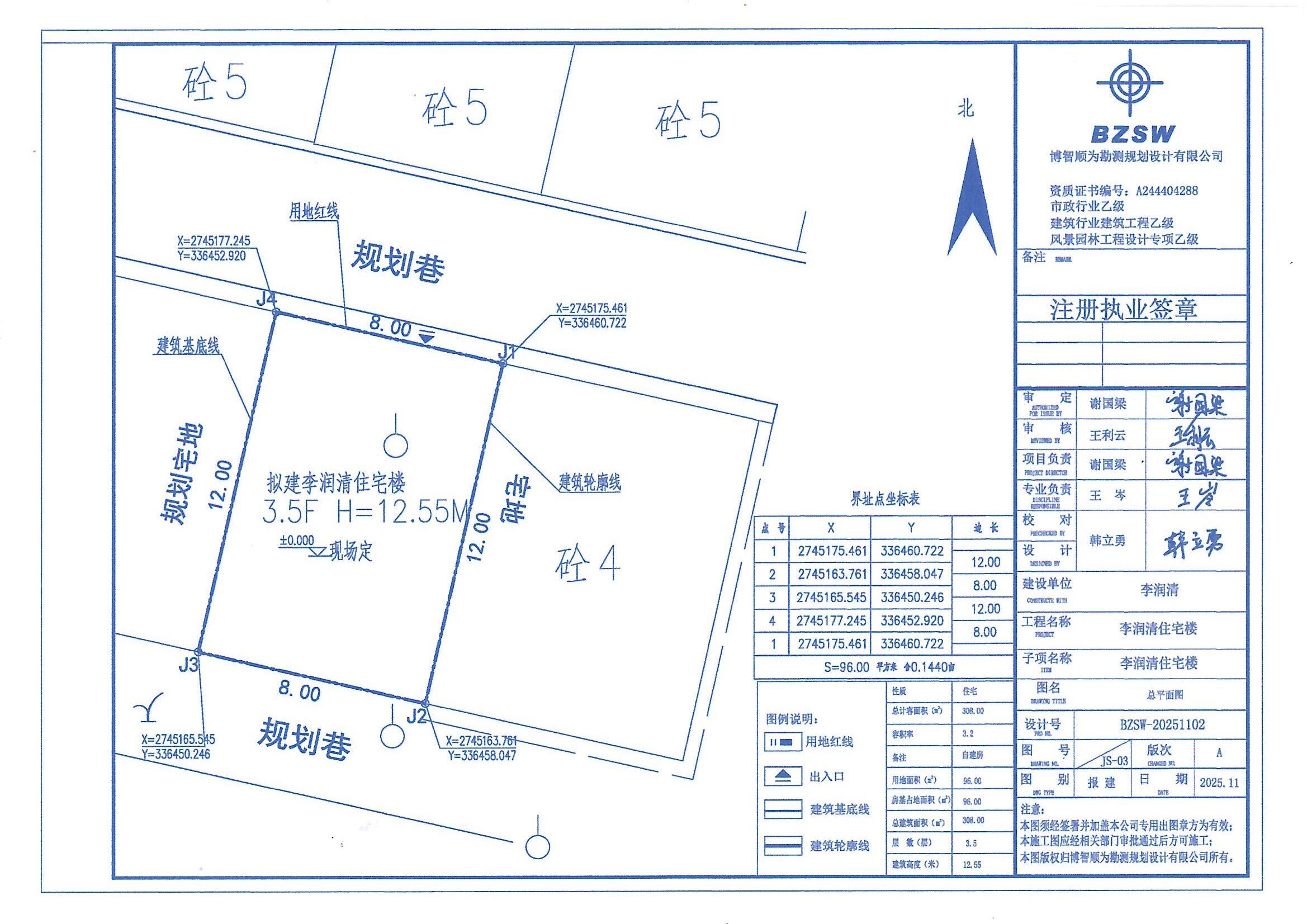 4、建设规模:新建框架结构3层半,总建筑面积308平方米。